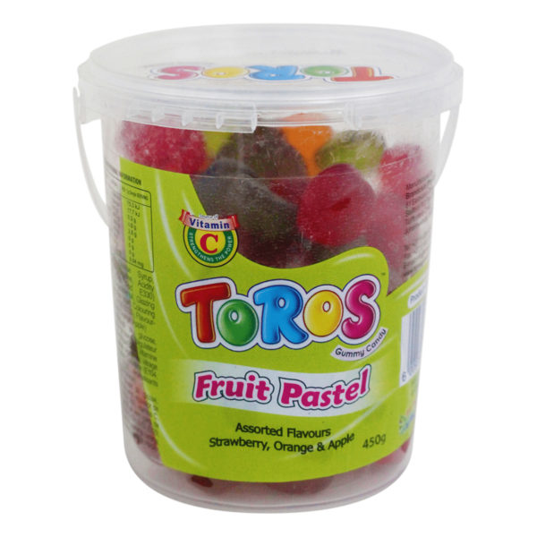 Sugar coated fruit flavoured gummies made with real fruit juice.